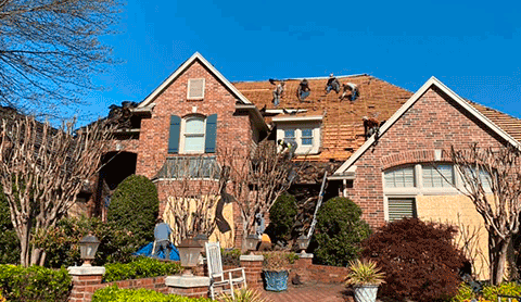 A comprehensive process of removing all existing roofing layers, including the shingles, underlayment, and sometimes even the wooden roof decking, before installing new components like flashing, drip edge, underlayment, and the final shingles to create a completely new protective roof system.